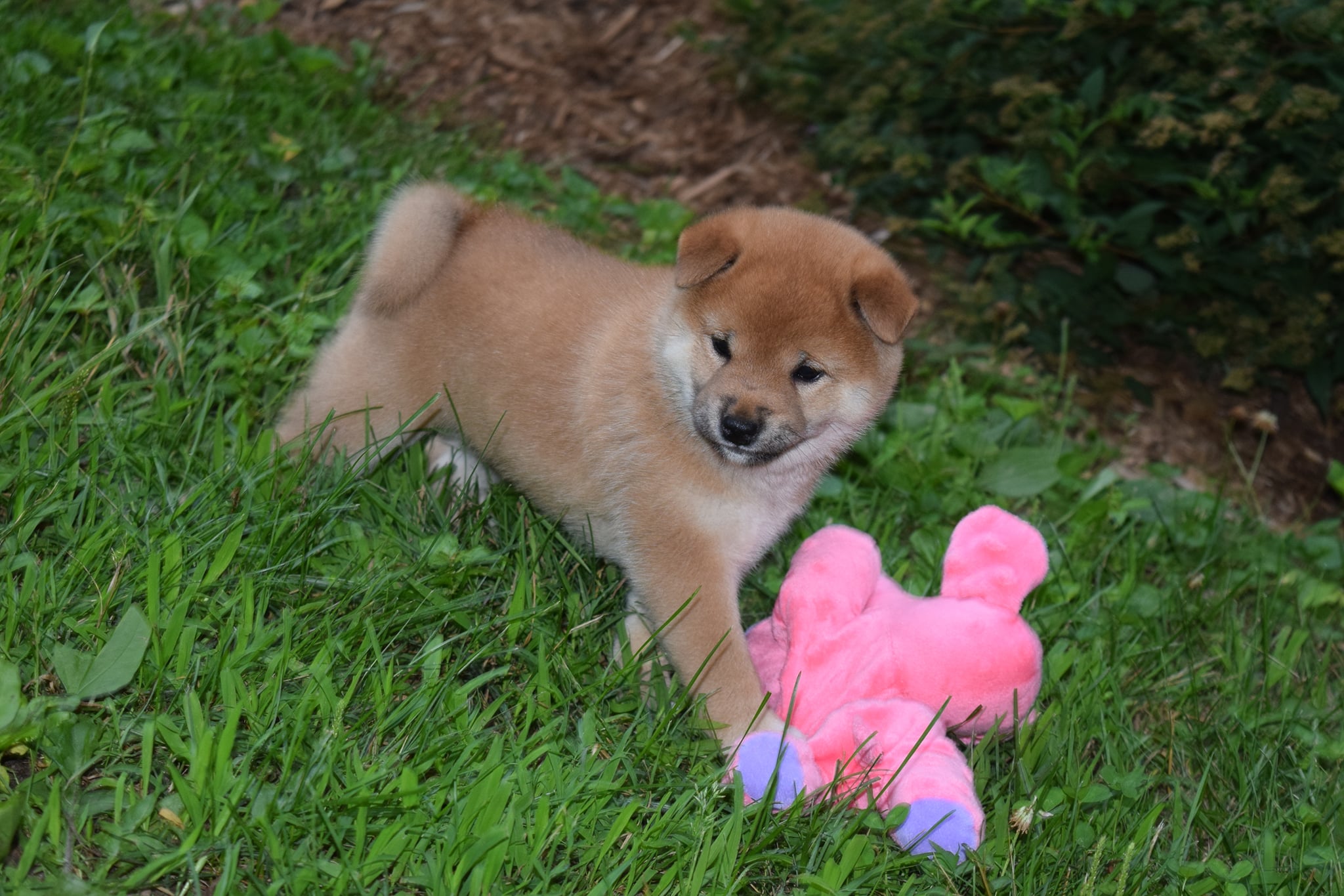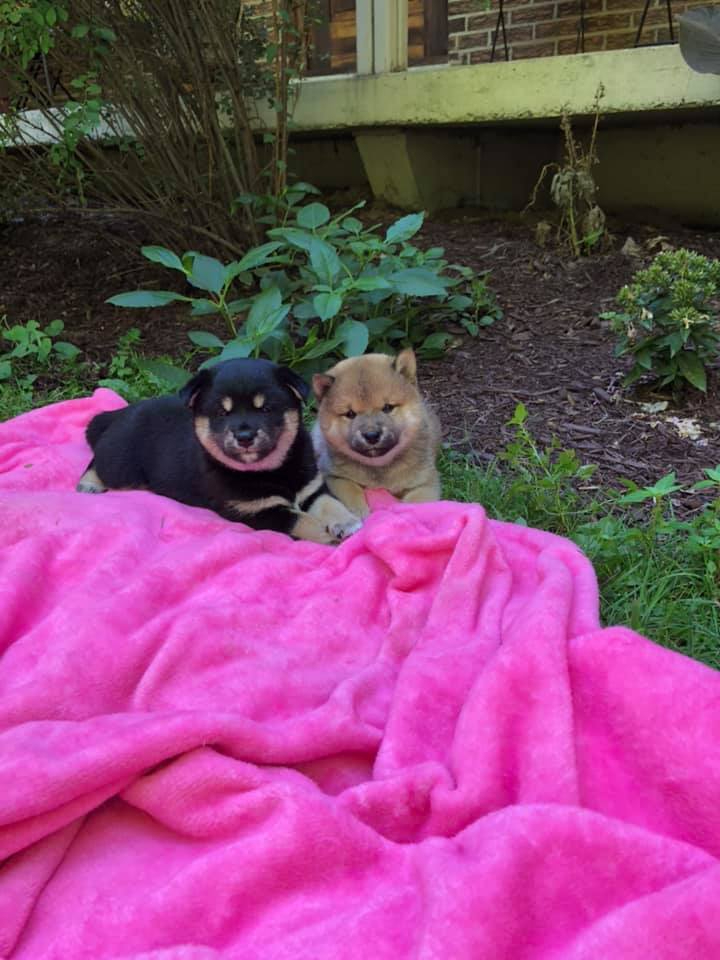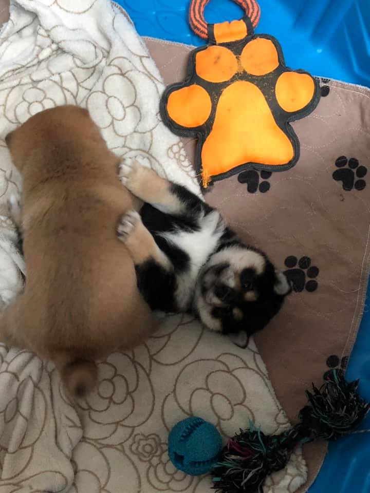Avec les années d’expérience nous avons développé une manière bien à nous et propre à la race donc à ses qualités et défauts d’élever les chiots. Nous avons mis en place beaucoup de technique de socialisation avec les humains, les bruits extérieurs, les autres animaux comme les autres chien, chats et même poules en été. les chiots font même des sorties extérieures avant leur départ (vétérinaire, animalerie, promenade en foret etc) De plus, les chiots commencent l’apprentissage de la propreté dès 5 semaines afin qu’il soient le plus propre possible à leur arrivé chez vous. Pour travailler avec le tempérament protecteur du Shiba nous avons aussi mis en place plusieurs techniques en très jeune âge afin de leur apprendre le partage des ressources.