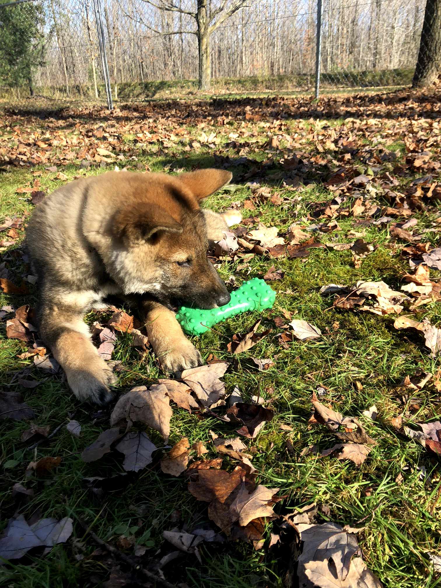 Les chiots ont accès à un enclos de 20 ‘ x 20’ dehors pour jouer et se dépenser ainsi qu’a une pièce de jeu avec plein de jouets et balles colorés qui stimulent leur apprentissage. Le sevrage se fait vers 8 semaines de façon très progressive afin d’éviter de donner un choc aux chiots et à la maman, ce pourquoi les chiots ne quittent pas l’élevage avant 9 à 10 semaines. Suite au sevrage nous commençons les périodes de cage seul la nuit en alternance afin de les habituer jeune à tolérer la solitude et à être plus indépendants.