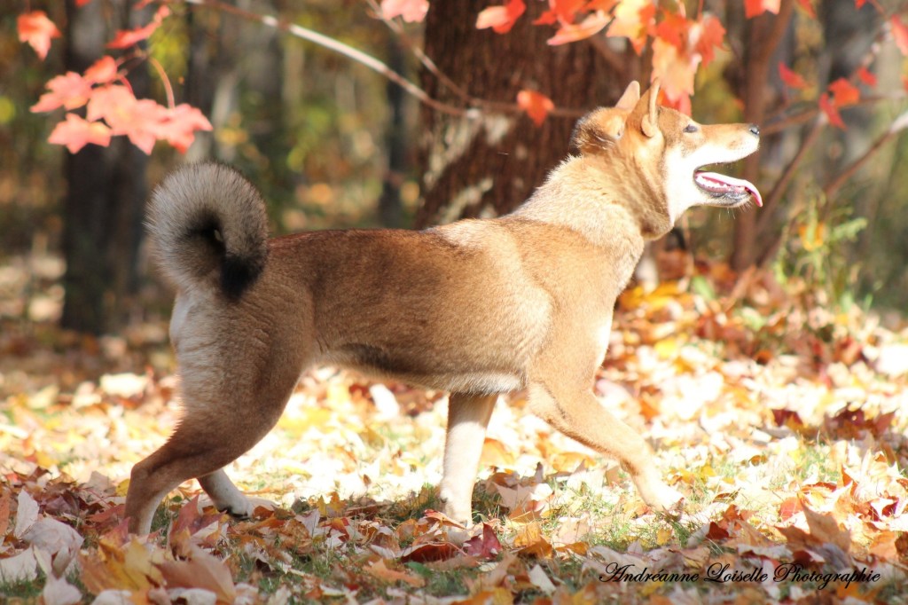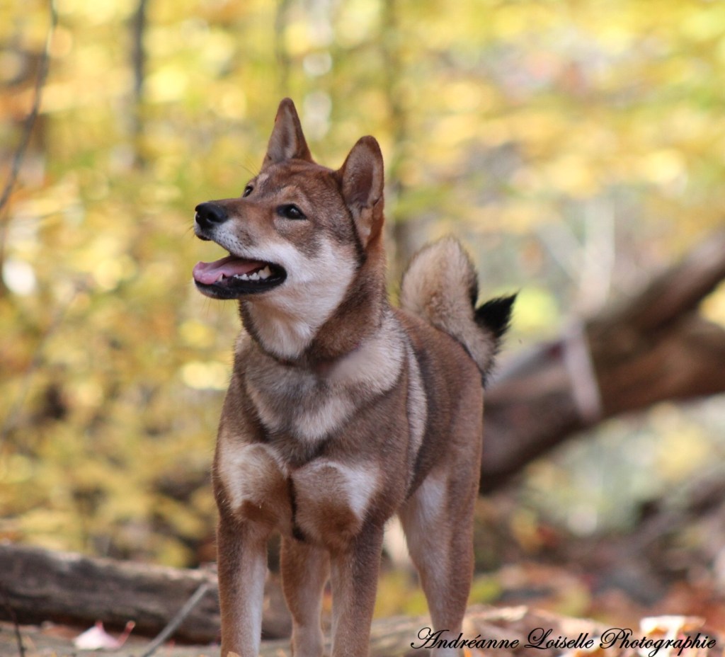 Le Shikoku est un descendant direct du loup Japonais (Okami) maintenant éteint. Sa couleur principale au Japon est le sésame roux comme son ancêtre le loup.